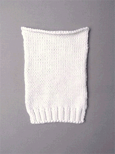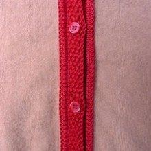 Cut the fabric vertically or diagonally, securing with a line of stitching if required. Pick up stitches parallel to the cut edge and knit a trim, enclosing the cut edge in the process. Repeat on the other side, including buttonholes if desired.